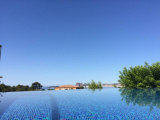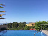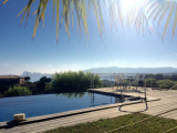 La terrasse et chaque appartement a la vue panoramique depuis le séjour la piscine et les chambres de la maison,